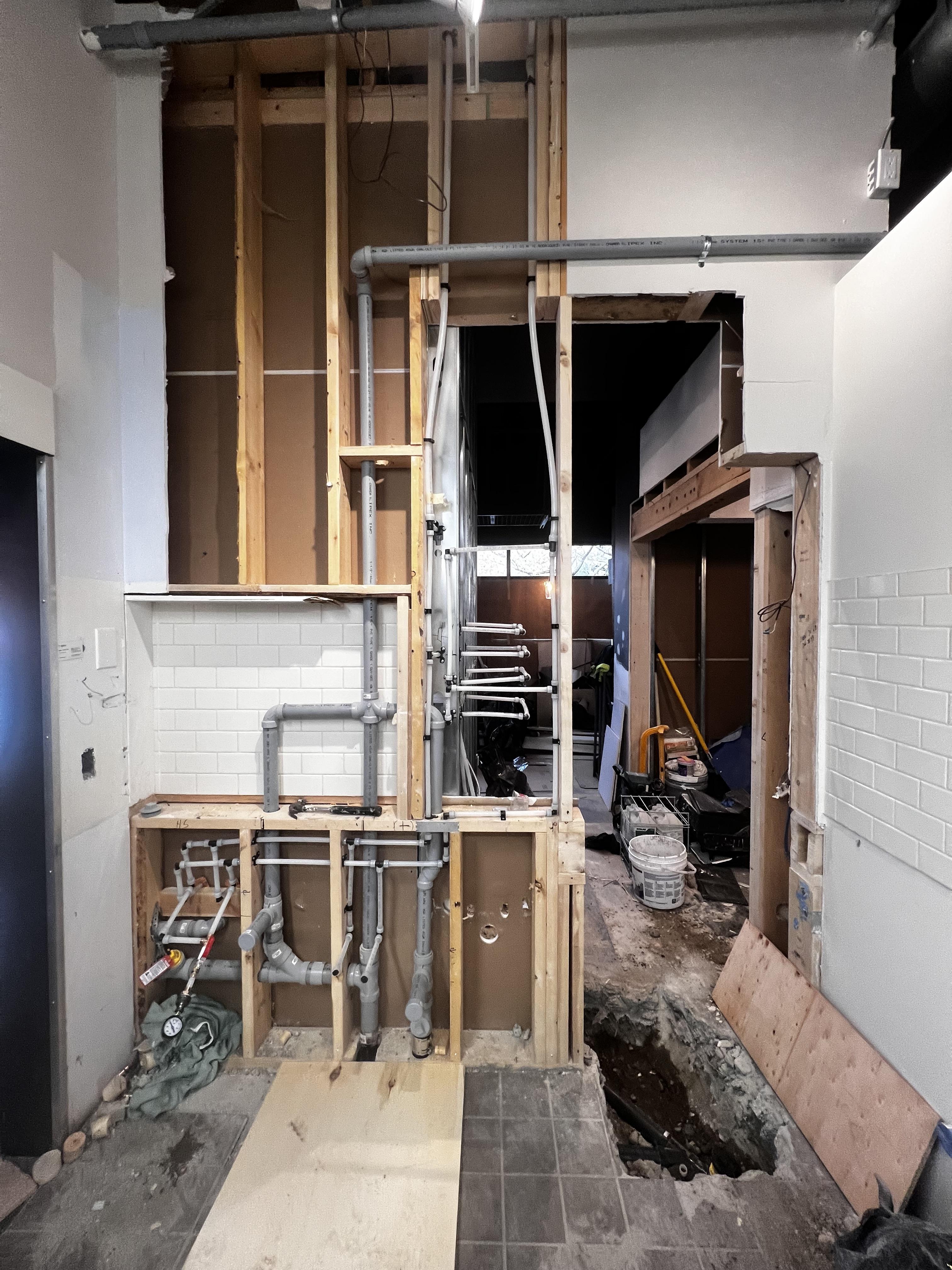 Plumbing work includes installing, renovating, and repairing water systems and drainage.